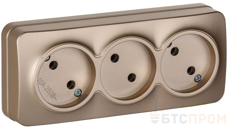 Розетка 3-м ОП GLORY РС23-2-ХШм 10А без заземл. без защ. шторок шампань матов. IEK ERH30-K37M-10 фото в каталоге от BTSprom.by