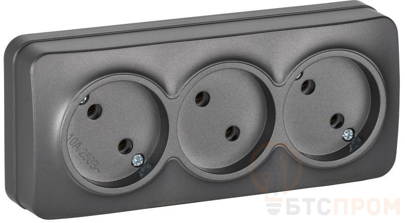 –Розетка 3-м ОП GLORY РС23-2-ХСм 10А без заземл. без защ. шторок сталь матов. IEK ERH30-K46M-10