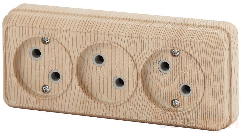 Розетка Intro Quadro 2-205-11 без заземления трехместная 3х2P, 16А-250В, IP20, ОУ, сосна