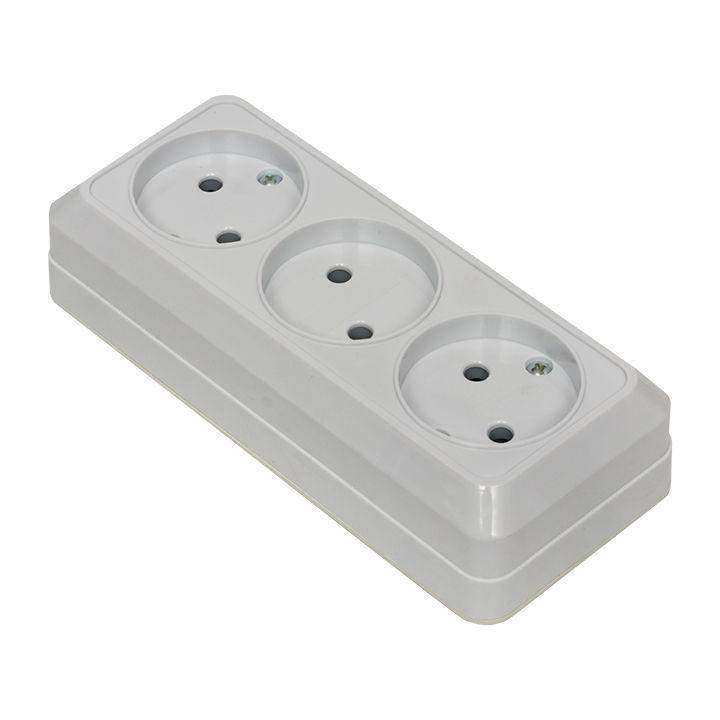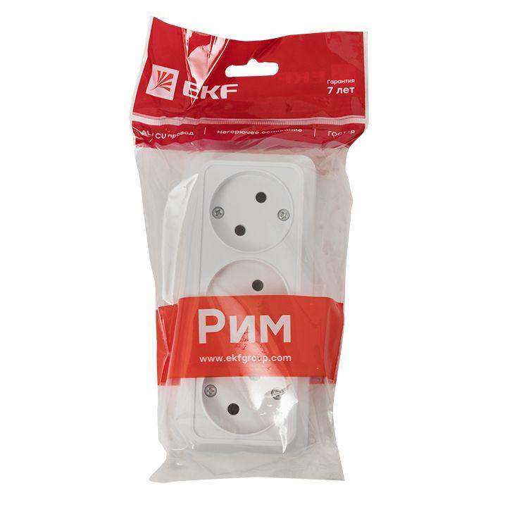 Розетка трехместная EKF серии Рим без заземления и без шторок станет отличным бюджетным решением для дачи и загородного дома. Она проста в установке и удобна в применении.