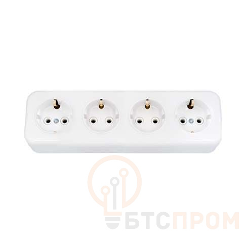 Розетка 4-м ОП РА16-245 с заземл. БТ Минск – монтажный элемент, электроустановочный аксессуар. Представляет собой четырехместную розетку, с заземлением. Цвет: белый. Предназначена для подключения до четырех электроприборов одновременно.