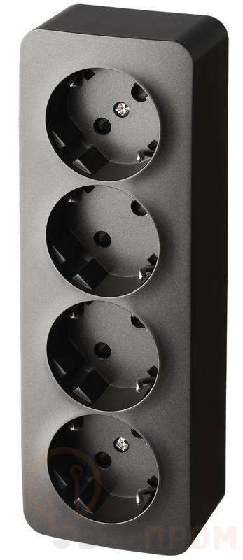 Конструкция предусматривает наличие заземляющего контакта для повышенной электробезопасности и защитных шторок, предотвращающих случайный доступ детей к токоведущим частям. Степень защиты IP20 указывает на то, что розетка предназначена для внутренней установки в условиях нормальной влажности. Стильный антрацитовый цвет корпуса из ударопрочного пластика легко впишется в современный интерьер.