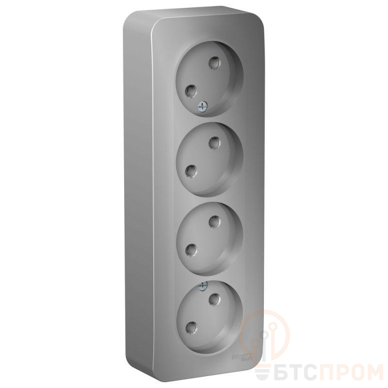 Розетка Systeme Electric (ранее Schneider Electric) BLANCA (алюминий, открытой установки) четырехместная, без шторок и заземления, с изолирующей пластиной предназначена для сетей до 250В, на ток до 16А. Четырехместная розетка позволяет подключить четыре устройства в одном месте. Она изготовлена из ABS-пластика, проста в установке и удобна в применении.