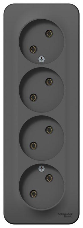 Розетка 4-м ОП Blanca 16А IP20 250В без заземл. без защ. шторок с изолир. пластиной антрацит SE BLNRA000416