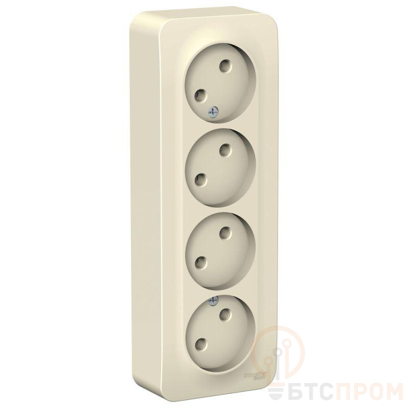 Розетка Systeme Electric (ранее Schneider Electric) BLANCA (молочный, открытой установки) четырехместная, без шторок и заземления, с изолирующей пластиной предназначена для сетей до 250В, на ток до 16А. Четырехместная розетка позволяет подключить четыре устройства в одном месте. Она изготовлена из ABS-пластика, проста в установке и удобна в применении.