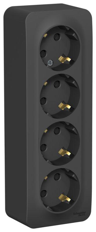 Розетка 4-м ОП Blanca 16А IP20 250В с заземл. защ. шторки с изолир. пластиной антрацит SE BLNRA011416