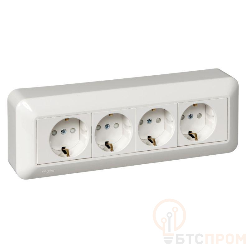 Розетка четырёхместная Systeme Electric (ранее Schneider Electric) BLANCA (открытой установки, цвет белый) с заземлением и со шторками, с монтажной стальной пластиной предназначена для сетей до 250 В на ток до 16 А. - Четырёхместная розетка позволяет подключить четыре устройства в одном месте. - Заземляющий контакт обеспечивает дополнительную защиту от удара электрическим током. При наличии заземления электрический потенциал уходит в землю, защищая человека. - Оптовая упаковка, сделано в России.