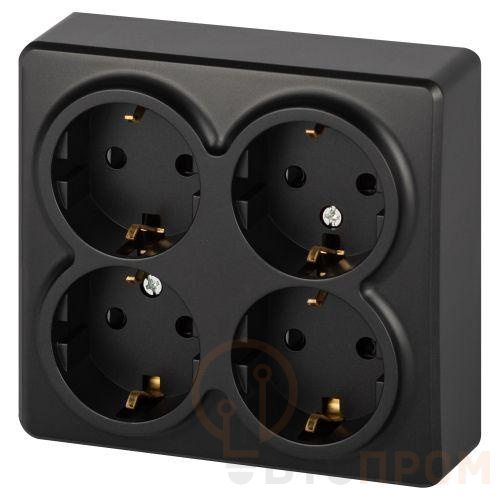 Розетка 4-м ОП Эксперт 11-2211-05 16А IP20 250В 4х2P+E Schuko с заземл. защ. шторки антрацит Эра Б0063004
