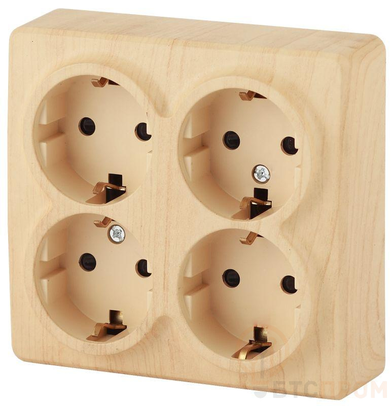 Розетка 4-м ОП Эра Эксперт 11-2211-11 16А IP20 16AX 250В 4х2P+E Schuko защ. шторки сосна Эра Б0020711