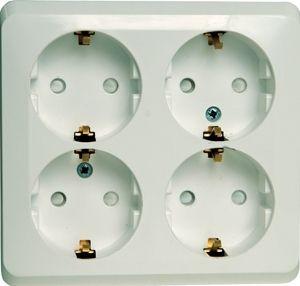 Розетка Systeme Electric (ранее Schneider Electric) ЭТЮД (белый, открытой установки) четырёхместная с заземлением и шторками предназначена для применения в сетях до 250В, на ток до 16А. Четырёхместная розетка позволяет подключить четыре устройства в одном месте. Шторки и заземление обеспечивают дополнительную безопасность при косвенных прикосновениях. Сделано в России.