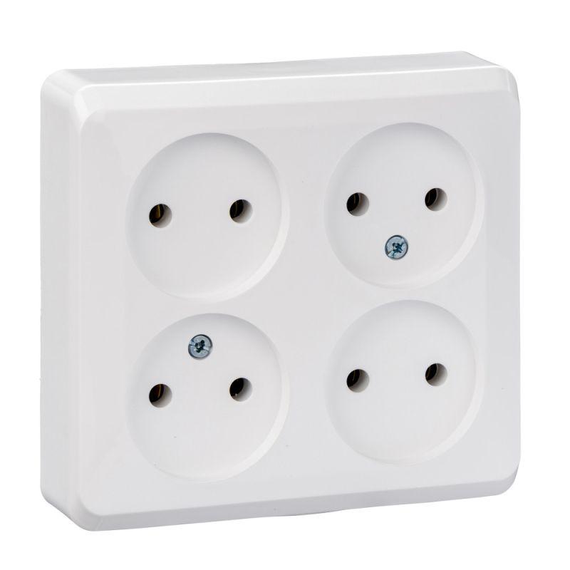 Розетка Systeme Electric (ранее Schneider Electric) ЭТЮД (белый, открытой установки) четырёхместная, без шторок и заземления предназначена для применения в сетях до 250В, на ток до 16А. Четырёхместная розетка позволяет подключить четыре устройства в одном месте. Она проста в установке и удобна в применении. Сделано в России.