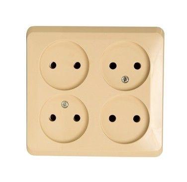 Розетка Systeme Electric (ранее Schneider Electric) ЭТЮД (кремовый, открытой установки) четырёхместная, без шторок и заземления предназначена для применения в сетях до 250В, на ток до 16А. Четырёхместная розетка позволяет подключить четыре устройства в одном месте. Она проста в установке и удобна в применении. Сделано в России.