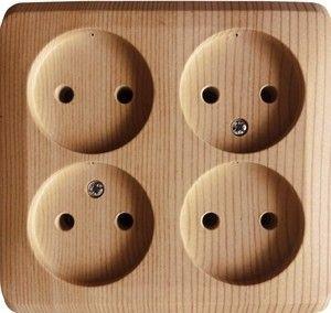 Розетка Systeme Electric (ранее Schneider Electric) ЭТЮД (сосна, открытой установки) четырёхместная, без шторок и заземления предназначена для применения в сетях до 250В, на ток до 16А. Четырёхместная розетка позволяет подключить четыре устройства в одном месте. Она проста в установке и удобна в применении. Изделия цвета Сосна обладают уникальным рисунком, напоминающим древесный сруб. Сделано в России.