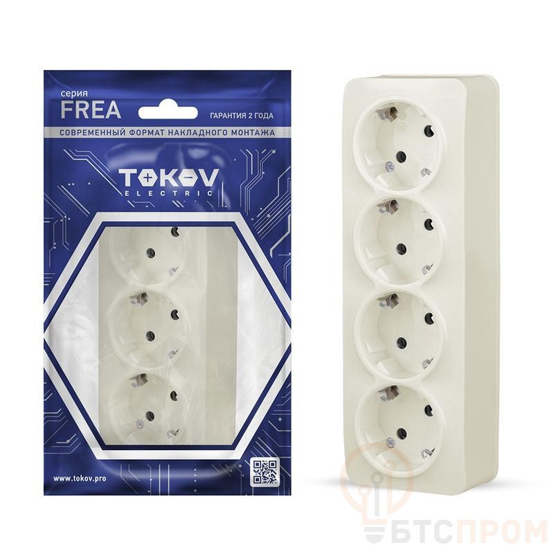 розетка 4-м оп frea 16а ip20 250в с заземл. абс-пластик бел. tokov electric tke-fr-r4z-c01 от BTSprom.by