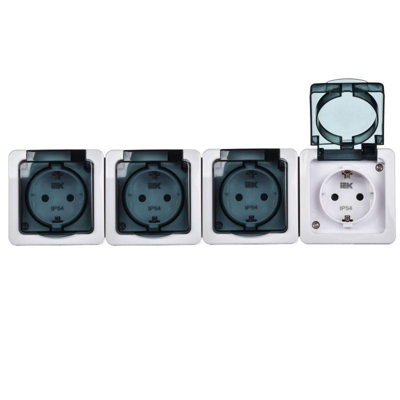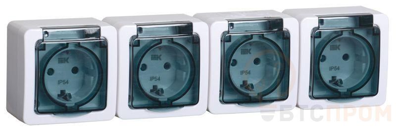 Розетка 4-м ОП Гермес Plus РСб24-3-ГПБд 16А IP54 с заземл. с дым. крышкой бел. IEK ERMP42-K03-16-54-EC