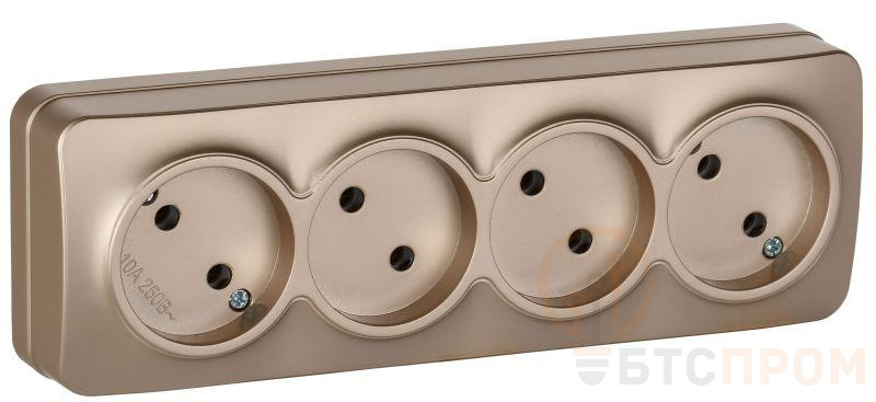 –Розетка 4-м ОП GLORY РС24-2-ХШм 10А без заземл. без защ. шторок шампань матов. IEK ERH40-K37M-10
