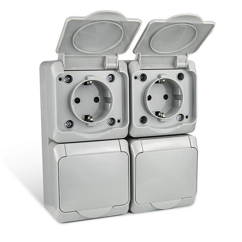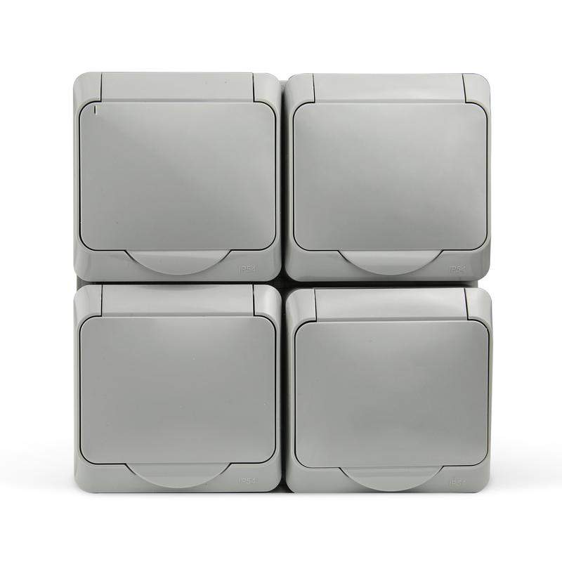 –Розетка 4-м ОП Nix 16А IP54 250В с заземл. с крышкой сер. TOKOV ELECTRIC TKE-NX-R4Z-C06-IP54