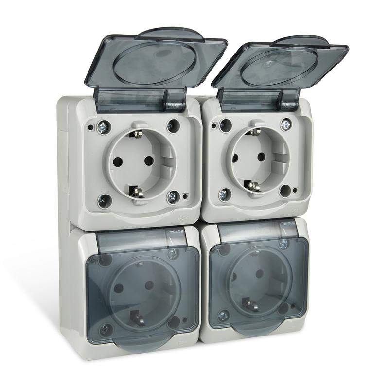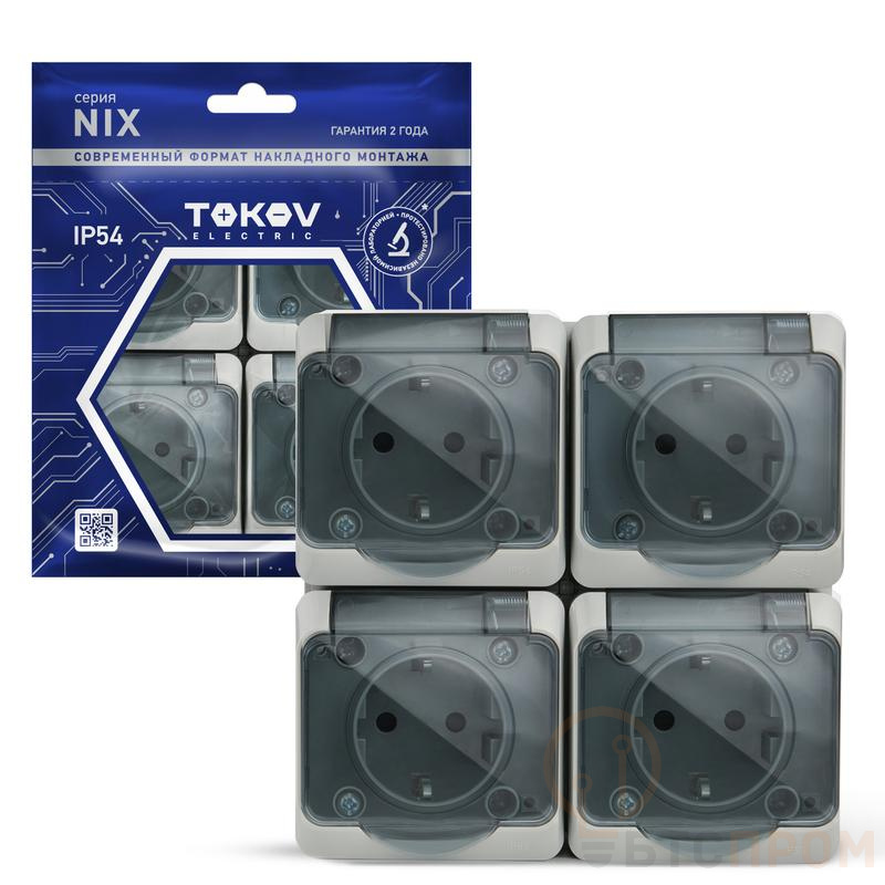 Розетка 4-м ОП Nix 16А IP54 250В с заземл. с прозр. крышкой сер. TOKOV ELECTRIC TKE-NX-R4Z-C06T-IP54