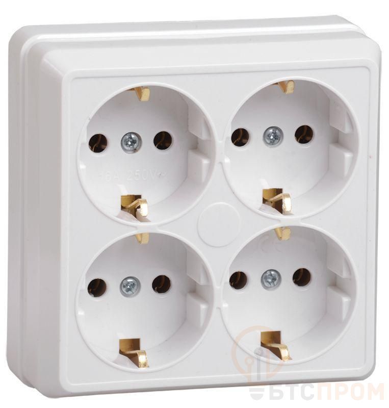 –Розетка 4-м ОП Октава РС24-3-ОБ 16А IP20 с заземл. бел. IEK ERO41-K01-16-DC