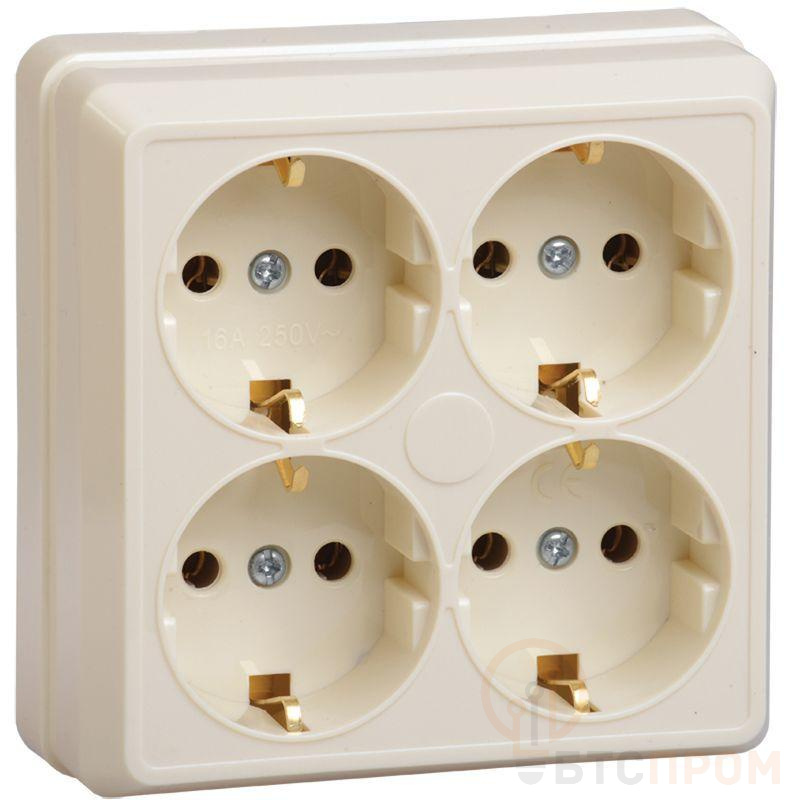 –Розетка 4-м ОП Октава РС24-3-ОК 16А IP20 с заземл. крем. IEK ERO41-K33-16-DC