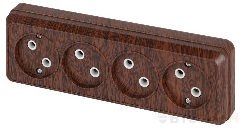 Розетка четырехместная серии Intro Quadro открытой установки цвет венге 2-207-10. Номинальные характеристики 16А 250В.,корпус выполнен из платика (термопласт). Оснащёна винтовыми зажимами.