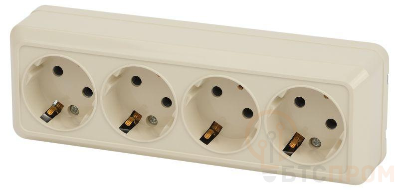 Розетка четырехместная Intro серии Quadro 2-208-02 с заземлением 4х2P+E, открытой установки, цвет слоновая кость;номинальные характеристики: 16А-250В, IP20; выполнена из негорючего термопласта, оснащена винтовыми зажимами и клеммами.