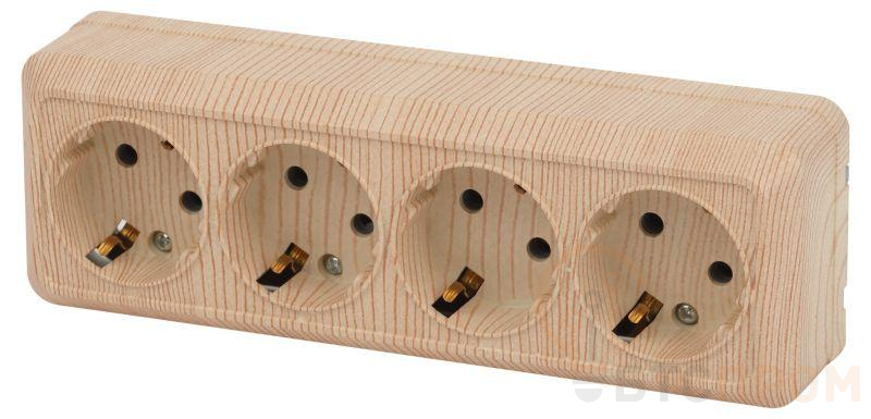 Розетка четырехместная серии Intro Quadro открытой установки цвет сосна 2-208-11. Номинальные характеристики 16А 250В. Выполнена из негорючего термопласта, оснащёна винтовыми зажимами.