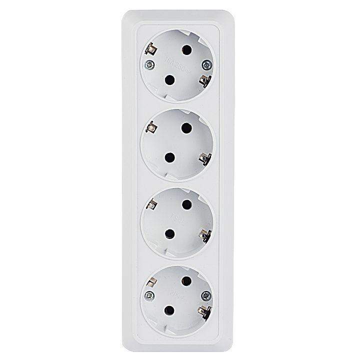Розетка четырехместная EKF серии Рим с заземлением и без шторок станет отличным бюджетным решением для дачи и загородного дома. Заземление обеспечивает защиту при случайном прикосновении. Она проста в установке и удобна в применении.