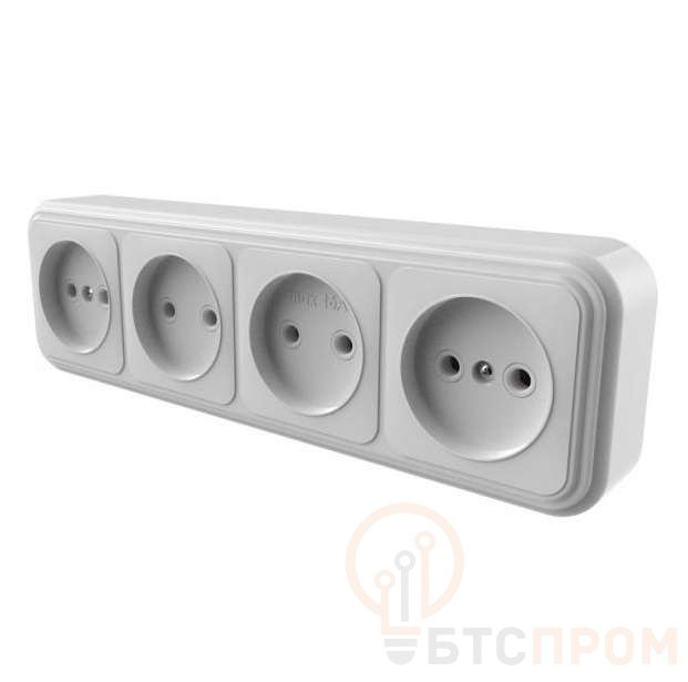 Розетка 4-м ОП Викинг без заземл. бел. БЕЛТИЗ RA16-464-Б фото в каталоге от BTSprom.by