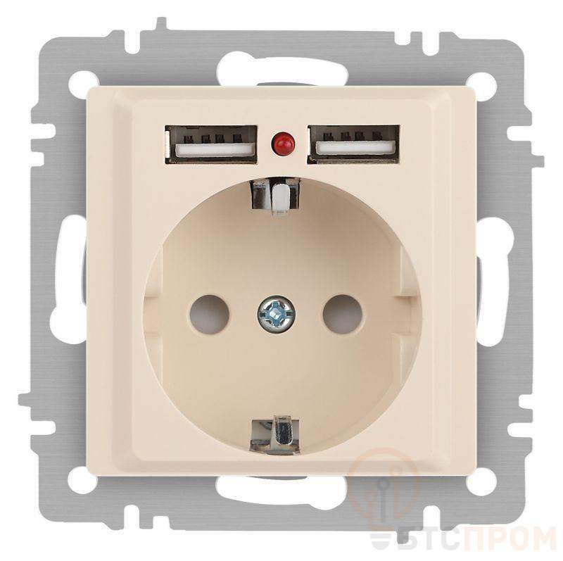 Розетка 1-м СП Accent 6-410-02 16А IP20 250В P+E Schuko + 2хUSB защ. шторки сл. кость Intro Б0063692