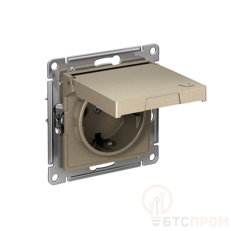 Розетка AtlasDesign 16А IP20 с заземл. защ. шторки с крышкой быстрозажим. клем. механизм шампань SE ATN000546S