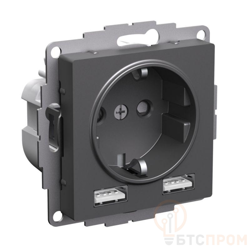 Розетка силовая Systeme Electric (ранее Schneider Electric) серии AtlasDesign 16А (цвет БАЗАЛЬТ) с заземлением и шторками с розеткой USB, с двумя разъемами типа А. - Заземляющий контакт обеспечивает дополнительную защиту от удара электрическим током. - Шторки обеспечивают дополнительную безопасность в доме, где находятся дети. - Одно устройство позволяет как подключить бытовые приборы, так и зарядить мобильные устройства.
