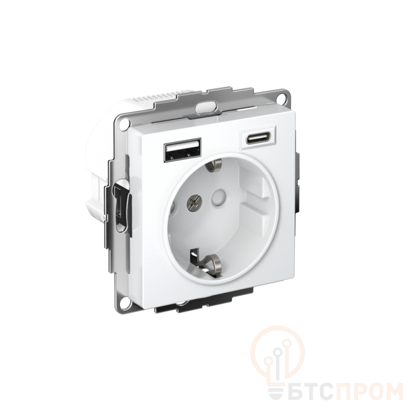 Розетка силовая Systeme Electric (ранее Schneider Electric) серии AtlasDesign 16А (цвет белый) с заземлением и шторками с розеткой USB, с двумя разъемами тип А и тип С. Розетка совмещает в себе сразу 3 функции в одном изделии. Удобное и современное решение для дома, офиса и других помещений. - Лицевые детали из качественного ABS-пластика, устойчивого к царапинам и УФ-излучению. - Заземляющий контакт обеспечивает дополнительную защиту от удара электрическим током. - Шторки обеспечивают дополнительную безопасность в доме, где находятся дети. - Одно устройство позволяет как подключить бытовые приборы, так и зарядить мобильные устройства.
