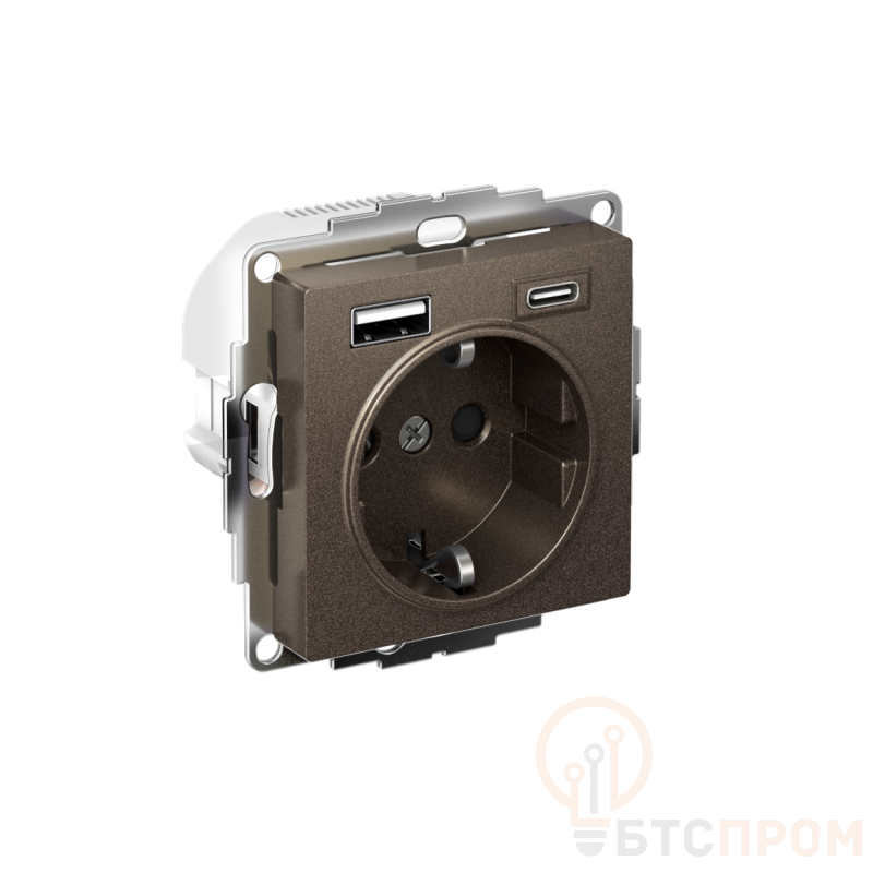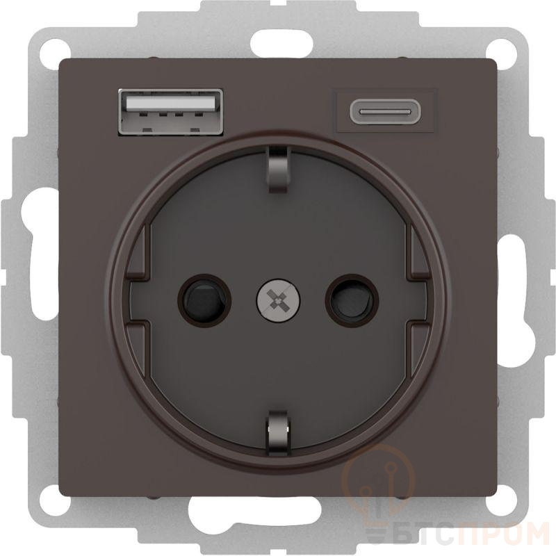 Розетка AtlasDesign 16А с 2-мя заряд. устройствами USB тип A+C 5В/2.4А 2х5В/1.2А механизм мокко SE ATN000632