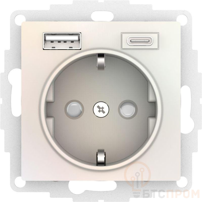 Розетка AtlasDesign 16А с 2-мя заряд. устройствами USB тип A+C 5В/2.4А 2х5В/1.2А механизм жемчуж. SE ATN000432