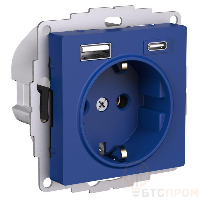 Розетка AtlasDesign 16А с 2-мя заряд. устройствами USB тип A+C 5В/2.4А/3.0А 2х5В/1.5А механизм аквамарин SE ATN001132