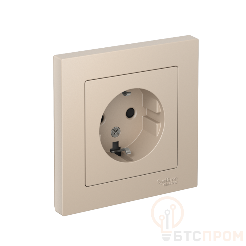 Розетка Systeme Electric (ранее Schneider Electric) серии AtlasDesign (в сборе, цвет песочный) одинарная с заземлением и без шторок подходит для сетей 250 В, на ток 16 А. Заземляющий контакт обеспечивает дополнительную защиту от удара электрическим током. Лицевые детали из качественного ABS-пластика, устойчивого к царапинам и УФ-излучению. Изделие поставляется в комплекте с рамкой того же цвета.