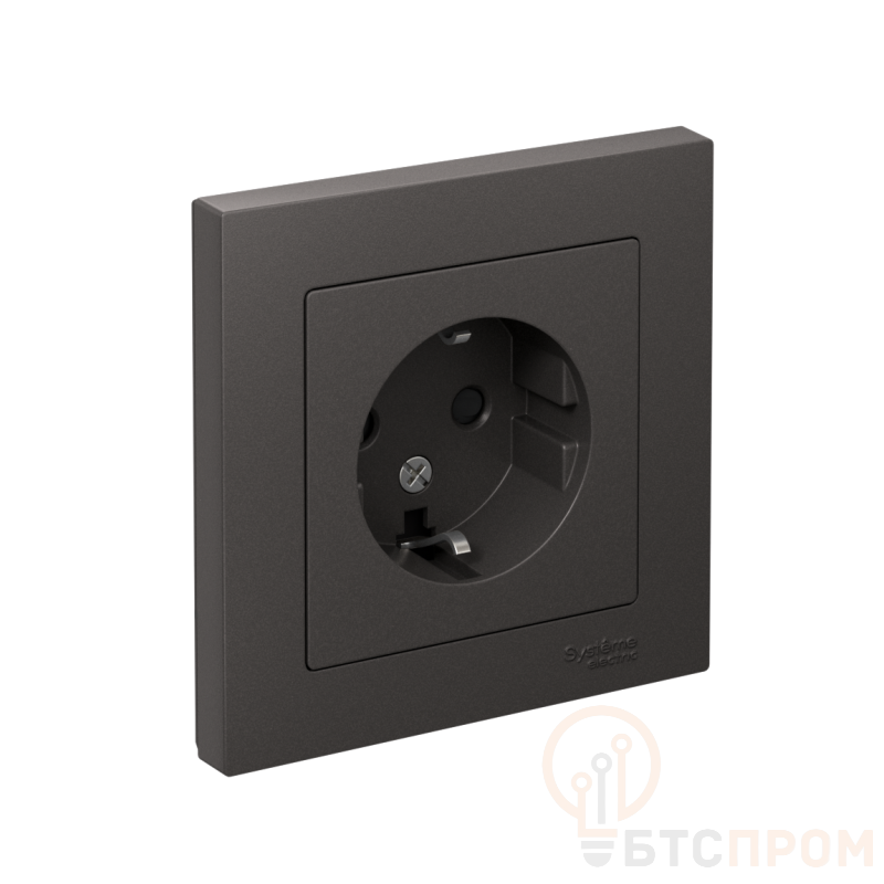 Розетка Systeme Electric (ранее Schneider Electric) серии AtlasDesign (в сборе, цвет БАЗАЛЬТ) одинарная с заземлением и без шторок подходит для сетей 250 В, на ток 16 А. - Заземляющий контакт обеспечивает дополнительную защиту от удара электрическим током. При наличии заземления электрический потенциал уходит в землю, защищая человека. - Лицевые детали из качественного ABS-пластика, устойчивого к царапинам и УФ-излучению. - Изделие поставляется в комплекте с рамкой того же цвета.
