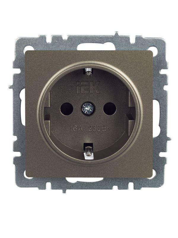 Розетка 1-м СП BRITE РС14-1-0-БрМ 16А с заземл. защ. шторки механизм маренго IEK BR-R14-16-K35