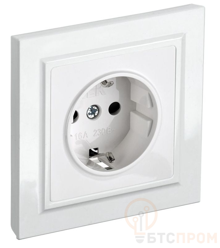 Розетка BRITE РСР14-1-0-БрБ 16А в сборе с заземл. защ. шторки бел. IEK BR-R14-16-K01-F фото в каталоге от BTSprom.by