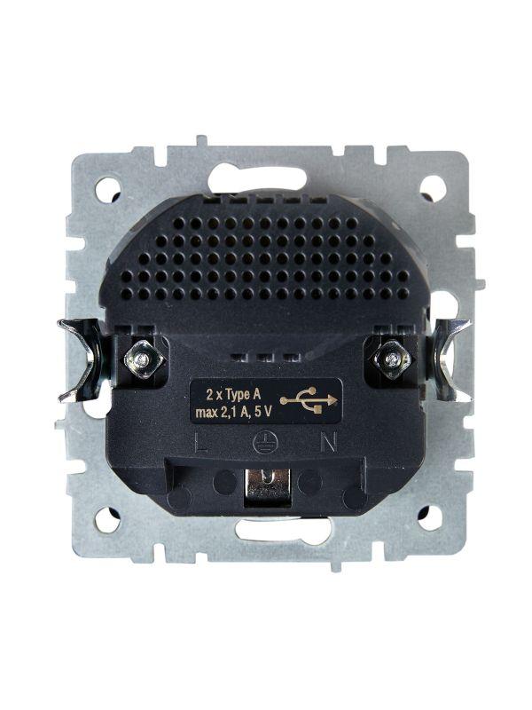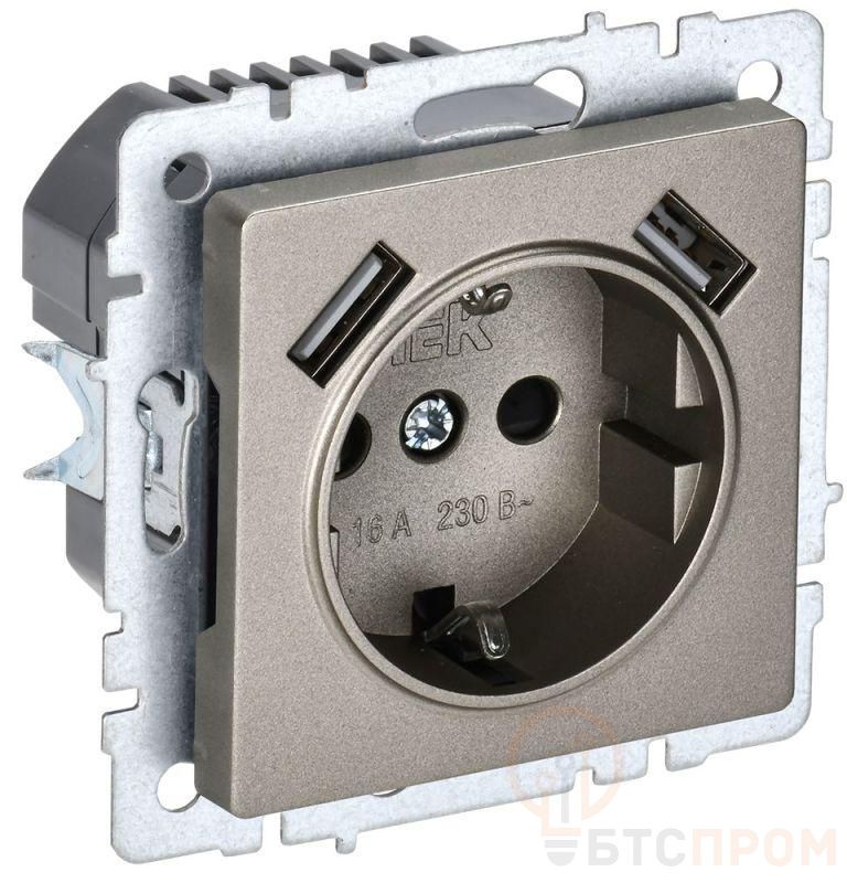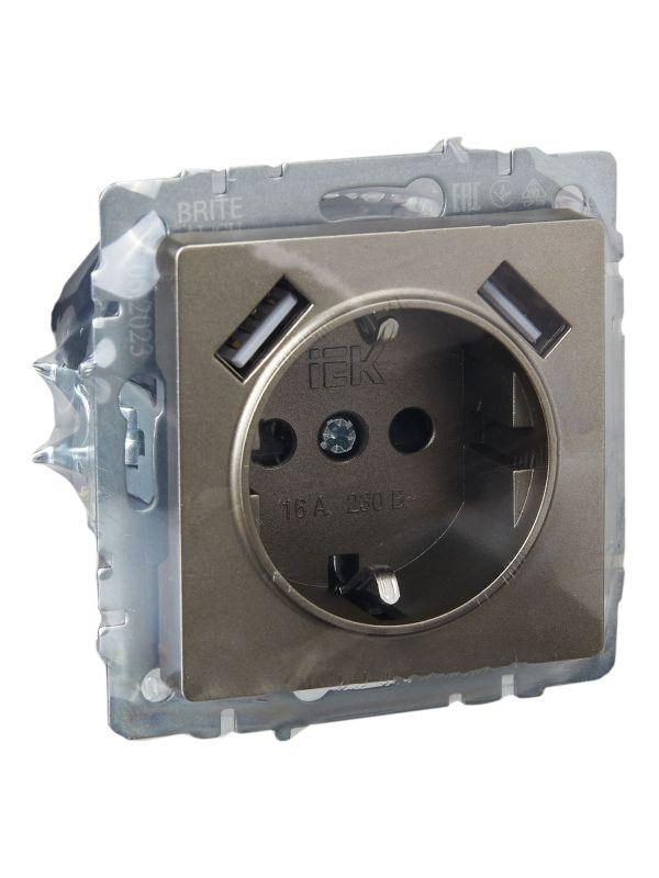 Розетка BRITE РЮш10-1-БрШ 16А с USB A+A 2.1А с заземл. защ. шторки механизм шампань IEK BR-R14-16-U21-D21-K37