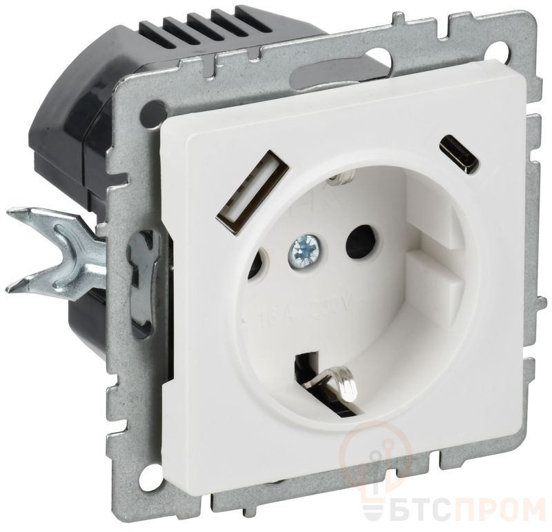 Розетка BRITE РЮш11-1-БрАБ 16А с USB A+C 18Вт с заземл. защ. шторки механизм арктич. бел. IEK BR-R14-16-U22-018-K91