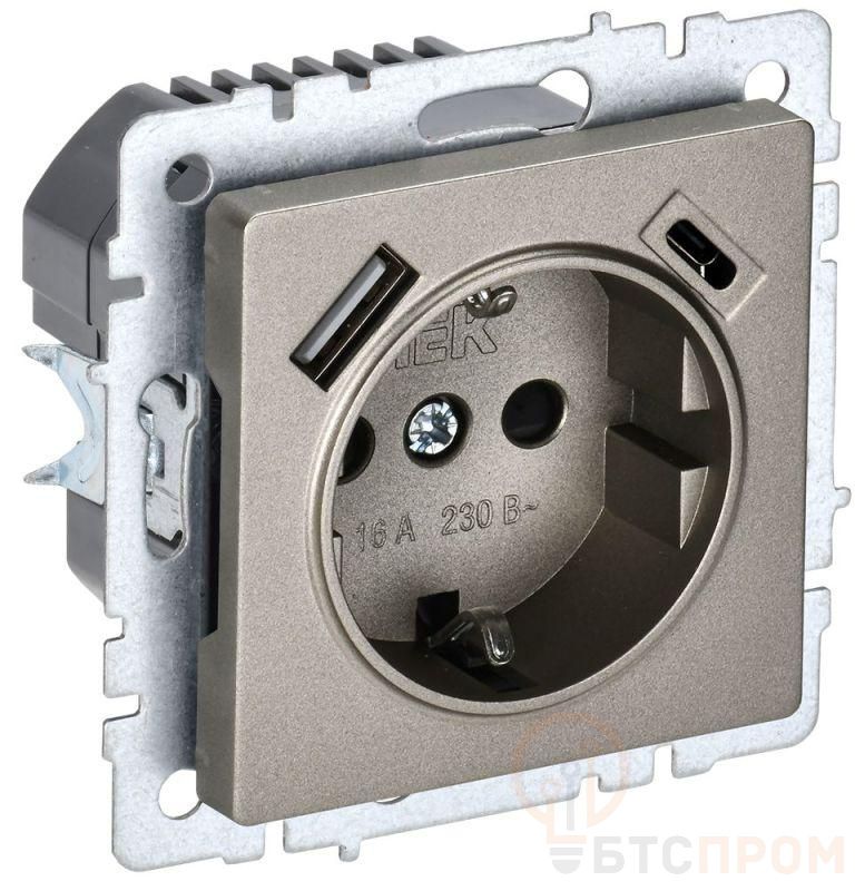 Розетка BRITE РЮш11-1-БрШ 16А с USB A+C 18Вт с заземл. защ. шторки механизм шампань IEK BR-R14-16-U22-018-K37