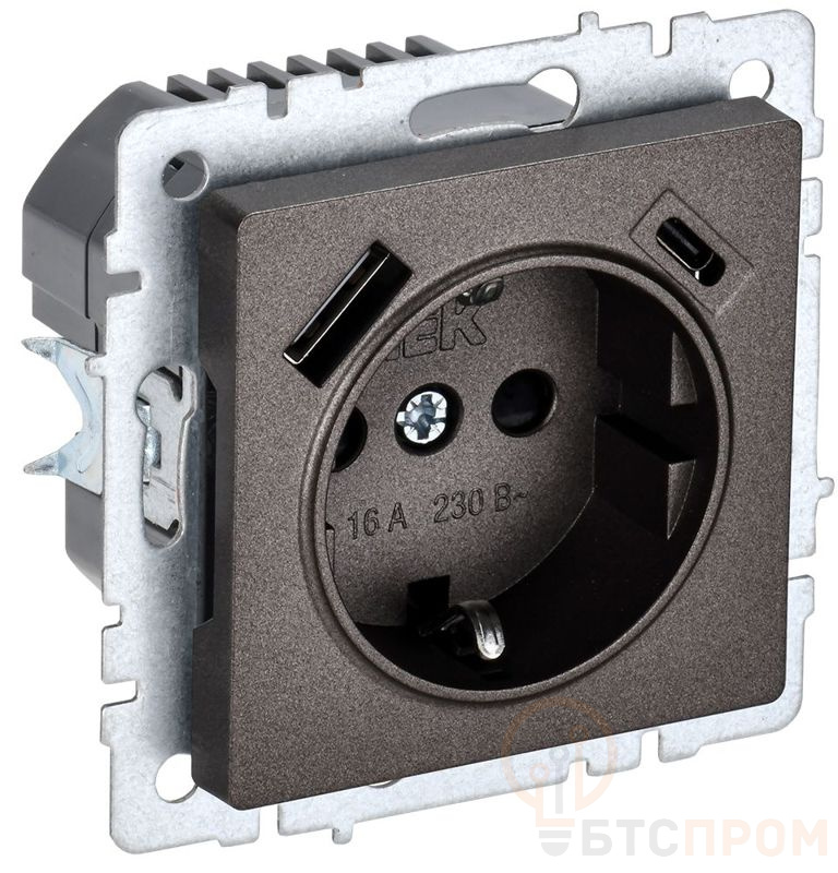 Розетка BRITE РЮш11-1-БрТБ 16А с USB A+C 18Вт с заземл. защ. шторки темн. механизм бронза IEK BR-R14-16-U22-018-K45