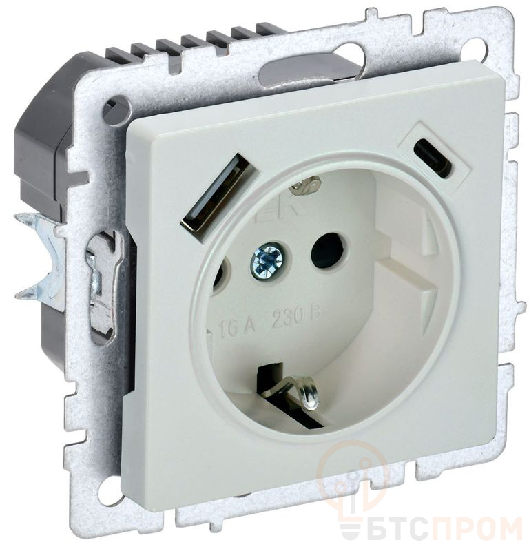 Розетка BRITE РЮш11-1-БрЖ 16А с USB A+C 18Вт с заземл. защ. шторки механизм жемчуж. IEK BR-R14-16-U22-018-K36