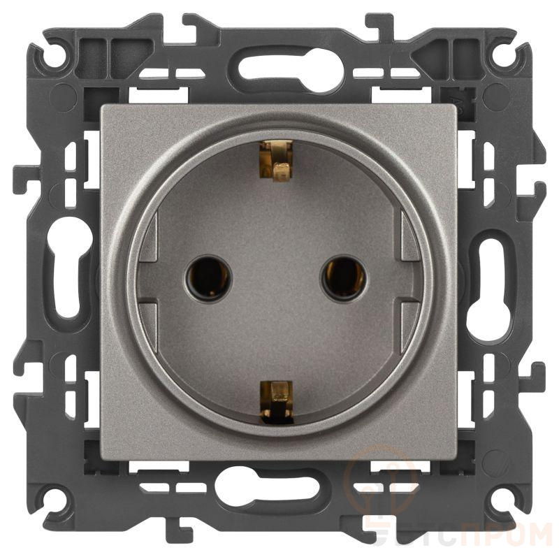 Розетка с заземлением серии Эра Elegance цвет титан 14-2101-16. Характеристики 16А 250В. Оснащена автоматическими клеммами для надёжной фиксации жил кабеля в механизме. Рамки приобретаются отдельно.
