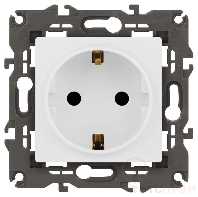 Розетка с заземлением и шторками серии Эра Elegance цвет белый матовый 14-2102-01М. Характеристики 16А 250В. Оснащена автоматическими клеммами для надёжной фиксации жил кабеля в механизме. Рамки приобретаются отдельно.