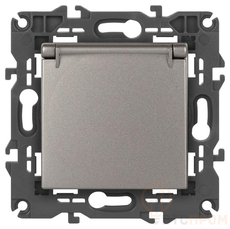 Розетка с заземлением, шторками и крышкой серии Эра Elegance цвет титан 14-2103-16. Характеристики 16А 250В. Оснащена автоматическими клеммами для надёжной фиксации жил кабеля в механизме. Рамки приобретаются отдельно.