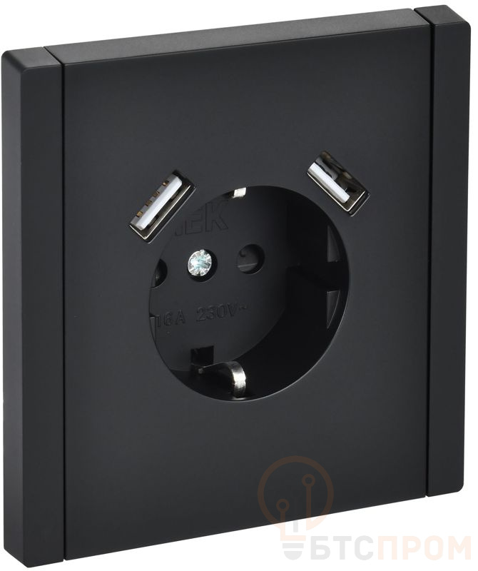 Розетка FORTE&PIANO FP145 16А USB A+A 3.1А с заземл. защ. шторки винт. крепл. черн. IEK FP-R14-16-U21-D31-K02