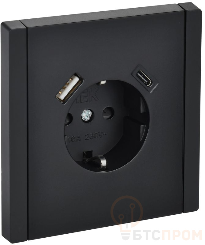 Розетка FORTE&PIANO FP147 16А USB A+C 18Вт с заземл. защ. шторки винт. крепл. черн. IEK FP-R14-16-U22-018-K02